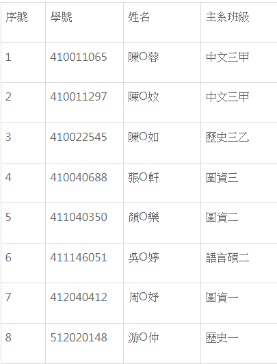 By jinny 三, 5 六月 2024 - 19:15 審核通過修讀名單 113 學年度 【中國古籍整理學分學程】 核定名單注意事項:1. 學程同學請隨時收e-mail,並定期上學程網站晃晃,以免錯失相關訊息。2. 各學年度選課相關方式及注意事項將公告於網頁上,再煩請同學上網查看。3. 如還有相關疑問請洽:童心怡秘書 (02-2905-2334)