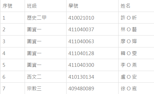 By jinny 二, 23 四月 2024 - 19:21 審核通過修讀名單 112 學年度 【中國古籍整理學分學程】 核定名單注意事項: 1. 學程同學請隨時收e-mail,並定期上學程網站晃晃,以免錯失相關訊息。 2. 各學年度選課相關方式及注意事項將公告於網頁上,再煩請同學上網查看。3. 如還有相關疑問請洽:童心怡秘書 (02-2905-2334)